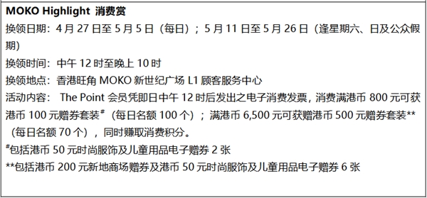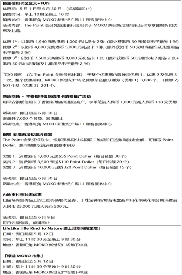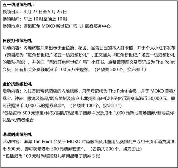 有關(guān)香港旺角MOKO新世紀(jì)廣場五一推廣活動(dòng)詳情