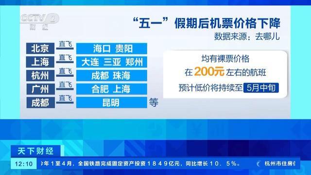 “五一”假期過后,多條熱門航線的機(jī)票價(jià)格大幅下降,其中部分低至一折左右。