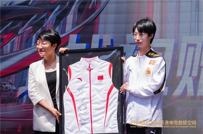 開業(yè)現(xiàn)場還舉辦了隆重的授牌儀式。由杭州第19屆亞運(yùn)會電子競技王者榮耀亞運(yùn)版本冠軍選手林恒,上臺將由6位亞運(yùn)冠軍簽名的戰(zhàn)袍贈予了萬斐酒店騰訊天美電競數(shù)娛空間項(xiàng)目。