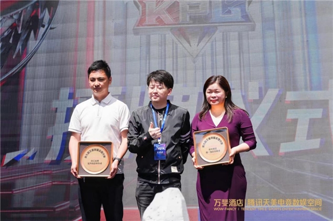 騰訊互娛天美L1工作室王者榮耀全國大賽負(fù)責(zé)人唐然上臺,授予了萬斐酒店騰訊天美電競數(shù)娛空間第九屆王者榮耀全國大賽——浙江省賽官方指定舉辦方,以及杭州賽區(qū)唯一指定總賽點(diǎn)的榮譽(yù)。由西湖文旅旅游發(fā)展有限公司副總經(jīng)理任亮,和上海歐愉科技總經(jīng)理史央清上臺接受授牌。