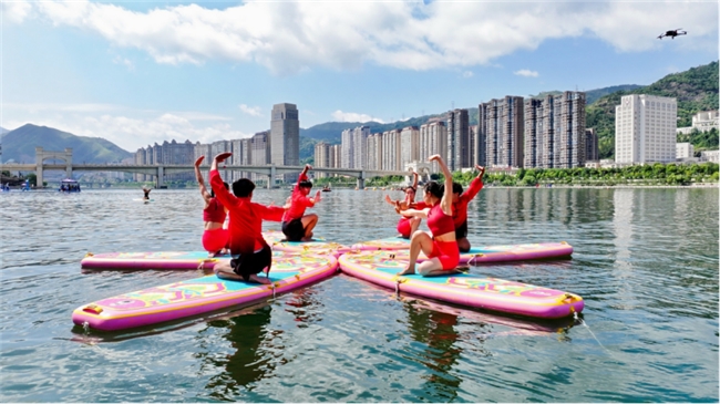 青田地處浙江省東南部,甌江中下游,山水資源豐富,水域總面積超100平方公里,水資源常規(guī)指標遠遠優(yōu)于全國、全省平均水平,環(huán)湖綠帶鑲嵌著豐富的歷史人文景點,湖岸城市風光與大自然風光融為一體,槳板與瑜伽擦出水上火花。
