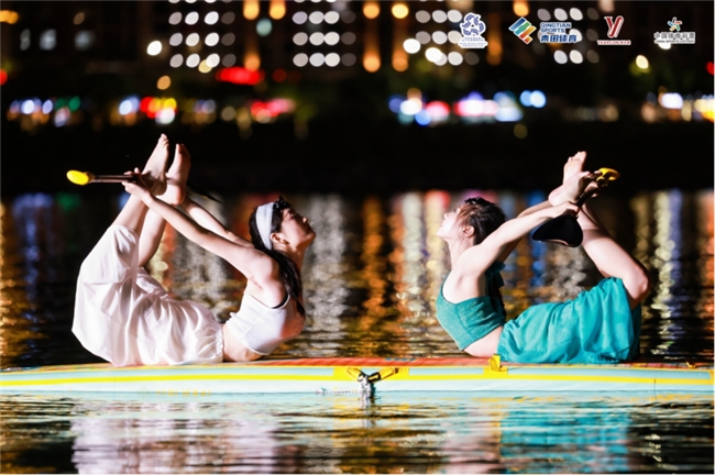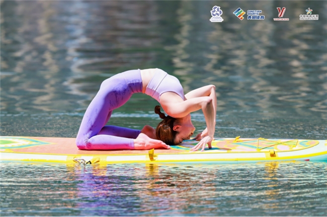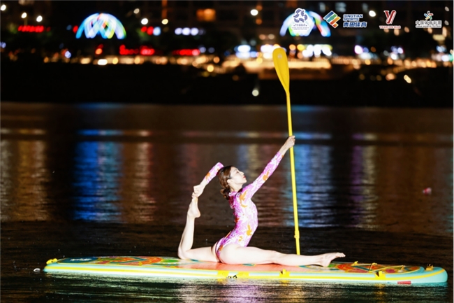 前屈、后彎、扭轉、平衡、倒置……音樂與動作和諧統(tǒng)一,身體與槳板融為一體。參賽隊員們展示的不僅是控制身體的力量,更是人與自然、美與健康的完美結合,圍觀群眾不時給予陣陣掌聲。
