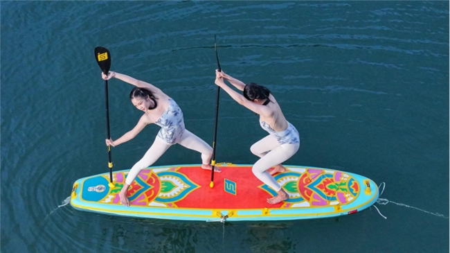 當古老的瑜伽遇上時尚的槳板,當柔美的倒影撫摸太鶴湖鱗鱗的水面,太鶴湖上便盛開了一朵朵絢麗的花朵。一片湖面便有一塊槳板,一塊槳板便是一片風景!槳板瑜伽展示的不僅是時尚之美,更是健康之美!