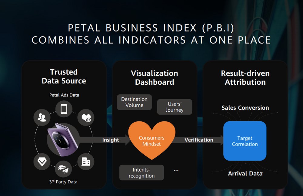 借助華為的技術(shù)和生態(tài)系統(tǒng)合作伙伴,鯨鴻動能還構(gòu)建了Petal Business Index(P.B.I)跨境數(shù)據(jù)驅(qū)動解決方案,以滿足更多企業(yè)組織的需求。作為以數(shù)據(jù)驅(qū)動的營銷工具,P.B.I整合了來自華為設(shè)備和鴻蒙生態(tài)的全方位數(shù)據(jù),并與第三方在線旅游服務(wù)平臺等行業(yè)伙伴合作,共同構(gòu)建了一個可信賴的數(shù)據(jù)模型,并圍繞目的地的關(guān)鍵指標建立可視化的儀表板。P.B.I通過建立銷售轉(zhuǎn)化與落地數(shù)據(jù)之間的相關(guān)模型,進行有效性分析,輔助營銷策略的制定。