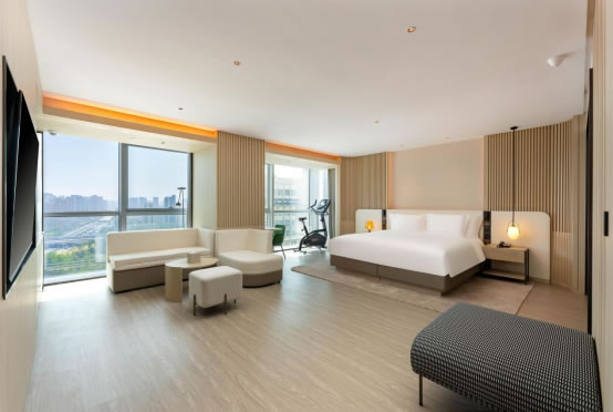 酒店所有的客房均配有健身器材及榮獲紅點設(shè)計大獎的香薰睡眠燈,同時配備的華為客控系統(tǒng)全方位提升智能化服務(wù)體驗,也是華為客控系統(tǒng)應(yīng)用到酒店行業(yè)的全球首次嘗試。整個客房輕松自然的設(shè)計、親膚舒適的寢具及多感官的助眠體驗,從視覺、聽覺等多方面為你營造一個良好的舒睡環(huán)境,緩解旅途壓力。
