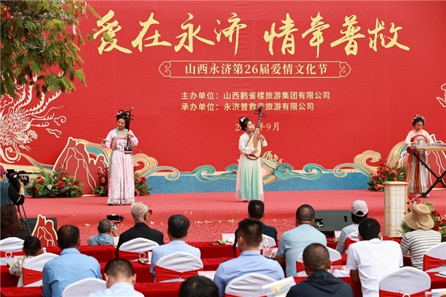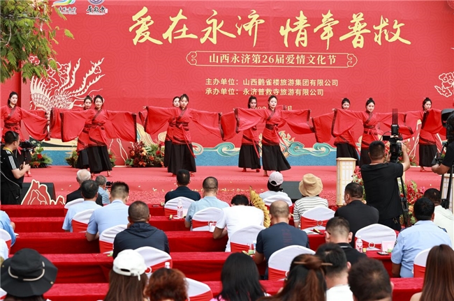 9月 21 日,普救寺迎來了第 26 屆愛情文化節(jié)的盛大開幕式。開場節(jié)目《蒲州花傘》瞬間將人們帶入了濃郁的地域風(fēng)情之中。隨后,主持人隆重介紹到場領(lǐng)導(dǎo)嘉賓。永濟(jì)市政府黨組成員崔子龍發(fā)表了誠摯而熱情的致辭,表達(dá)了對愛情文化節(jié)的美好祝愿和對永濟(jì)文化旅游事業(yè)的殷切期望。市委宣傳部部長李朝霞宣布開幕,正式拉開了本次愛情文化節(jié)的精彩帷幕。