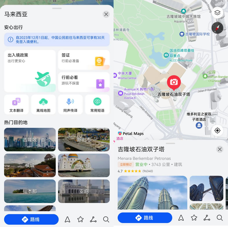 不用怕!Petal Maps是更適合中國寶寶的導(dǎo)航。它不僅原生默認(rèn)支持中文界面和語言導(dǎo)航,還能提供覆蓋全球 160+ 國家和地區(qū)的詳細(xì)地圖數(shù)據(jù),豐富的地理位置信息和精準(zhǔn)的路線規(guī)劃,能帶你輕松抵達(dá)目的地,發(fā)現(xiàn)隱藏的景點(diǎn)和美食。