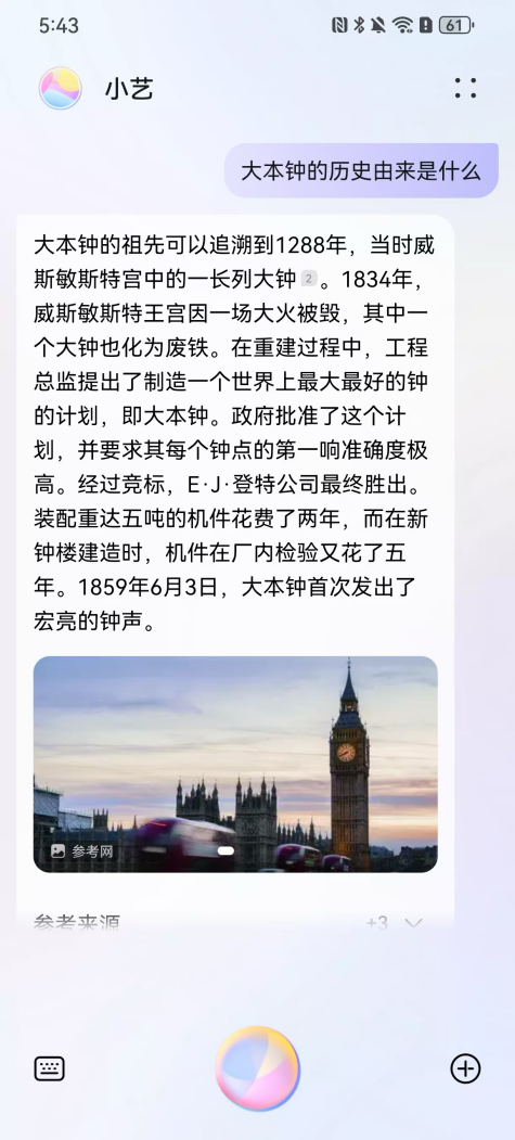 旅行途中遇到任何問題,都可以向華為手機(jī)“問一問”。借助強(qiáng)大的AI技術(shù)底座,華為智慧助手小藝能夠理解你的需求,并提供精準(zhǔn)的答案和建議。例如,當(dāng)你漫步在倫敦街頭,被雄偉的大本鐘所震撼,卻對它的歷史一無所知時,只需對著手機(jī)問小藝:“大本鐘的歷史由來是什么?”,小藝就能為你娓娓道來它的前世今生,讓你對這座城市的歷史文化有更深入的了解。 或者,當(dāng)你站在巴黎圣母院前,想要了解這座哥特式建筑的藝術(shù)風(fēng)格,也可以向小藝提問,它會為你詳細(xì)介紹圣母院的建筑特點(diǎn)和歷史意義。