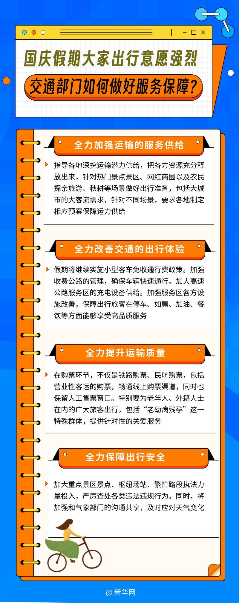 “十一”假期明天就將開啟。交通運(yùn)輸部預(yù)測,假期全社會跨區(qū)域人員流動量將達(dá)到19.4億人次,平均每天2.77億人次。強(qiáng)烈的出行意愿傳遞出流動的中國活力。假期出行將會呈現(xiàn)出哪些顯著特點(diǎn)、主要的熱門目的地有哪些、交通部門如何做好服務(wù)和安全保障工作?