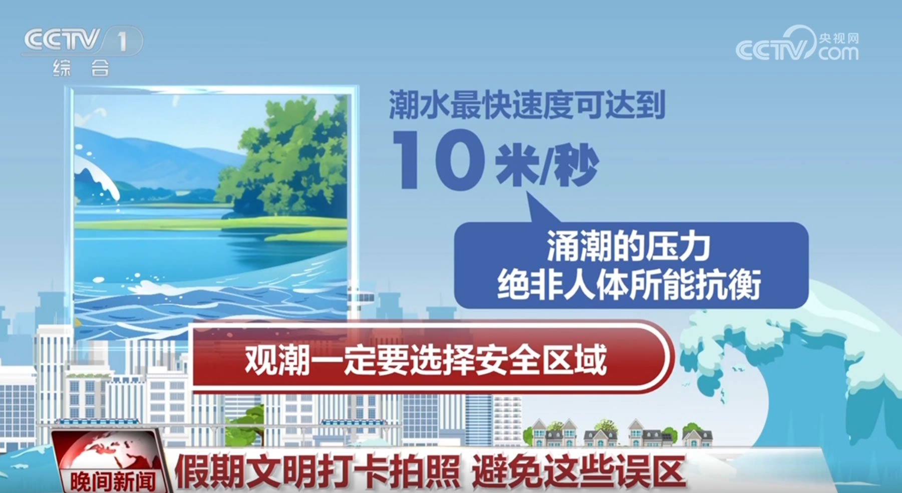 誤區(qū)一:觀潮離近點拍照沒事,潮水到來前跑回大堤就行。實際上,潮水最快速度可達到10米/秒,涌潮的壓力也絕非人體所能抗衡,因此觀潮一定要選擇安全區(qū)域。