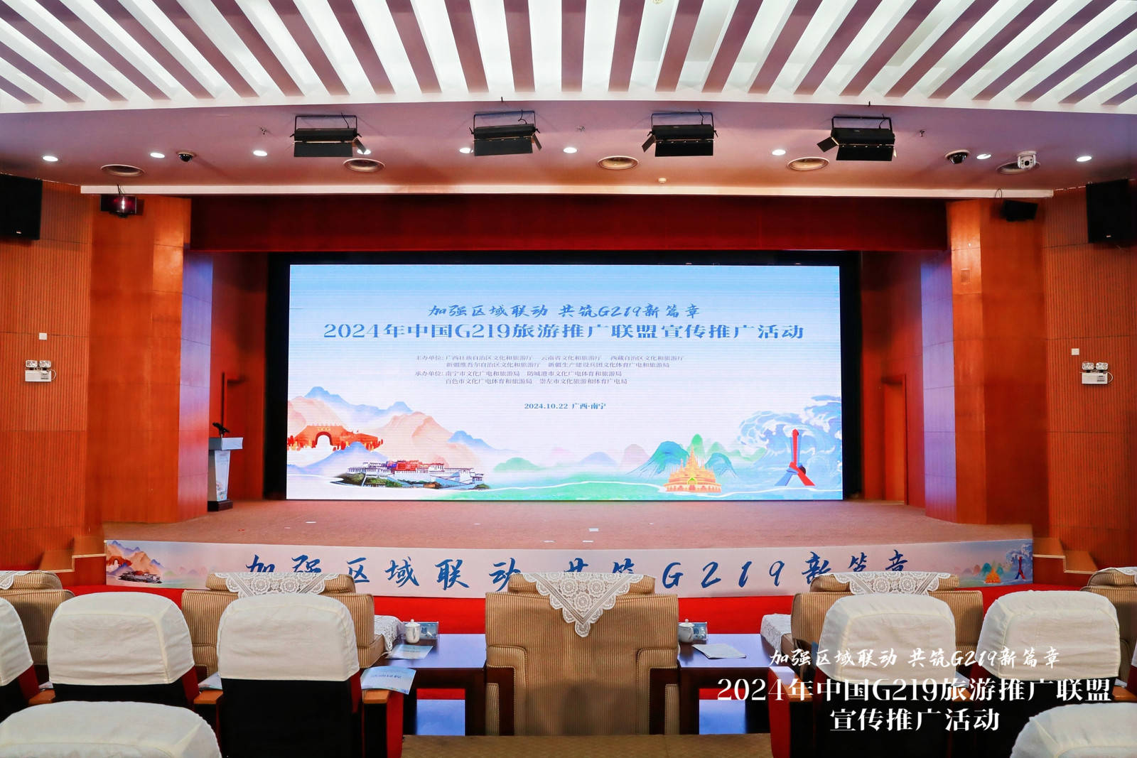 2024年10月21日—24日,中國(guó)G219旅游推廣聯(lián)盟宣傳推廣活動(dòng)(以下簡(jiǎn)稱“聯(lián)盟推廣活動(dòng)”)在廣西南寧市舉辦,本次活動(dòng)由廣西壯族自治區(qū)文化和旅游廳、云南省文化和旅游廳、西藏自治區(qū)文化和旅游廳、新疆維吾爾自治區(qū)文化和旅游廳、新疆生產(chǎn)建設(shè)兵團(tuán)文化體育廣電和旅游局聯(lián)合主辦。廣西壯族自治區(qū)文化和旅游廳黨組成員、副廳長(zhǎng)班華勤、西藏自治區(qū)文化和旅游廳黨組成員、副廳長(zhǎng)姬越、云南省文化和旅游廳二級(jí)巡視員劉曉桐、新疆維吾爾自治區(qū)文化和旅游廳資源開發(fā)處段玉明處長(zhǎng),新疆生產(chǎn)建設(shè)兵團(tuán)文化體育廣電和旅游局旅游處處長(zhǎng)楊紅艷出席活動(dòng)。來自廣西、云南、西藏、新疆等省區(qū)和新疆生產(chǎn)建設(shè)兵團(tuán)的文旅相關(guān)部門、行業(yè)協(xié)會(huì)、文旅企業(yè)代表及旅游達(dá)人、媒體記者等200多人參加活動(dòng)。