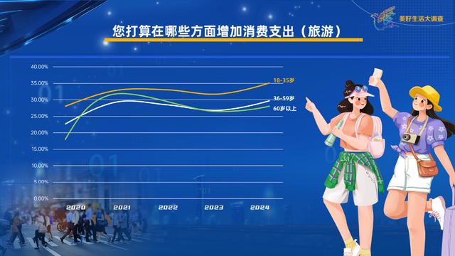 《美好生活大調(diào)查》發(fā)現(xiàn),2024年在國(guó)人消費(fèi)意愿榜上,旅游又一次站到了榜首的位置。這已經(jīng)是5年來(lái),旅游第三次站在消費(fèi)意愿榜的第一名,今年更是達(dá)到了5年來(lái)的最高點(diǎn)。
