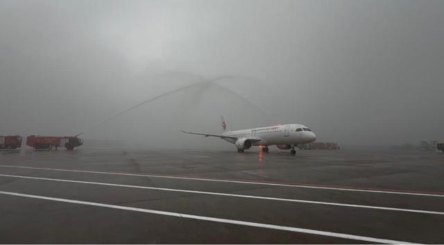 3日上午10時(shí)58分,由國(guó)產(chǎn)大飛機(jī)C919執(zhí)飛的MU5421“上海虹橋—重慶”航班,搭載159名旅客順利飛抵重慶江北國(guó)際機(jī)場(chǎng),標(biāo)志著國(guó)產(chǎn)大飛機(jī)C919在重慶的首個(gè)商業(yè)航班正式開(kāi)通,F(xiàn)場(chǎng)舉行了民航最高禮儀“過(guò)水門(mén)”儀式。