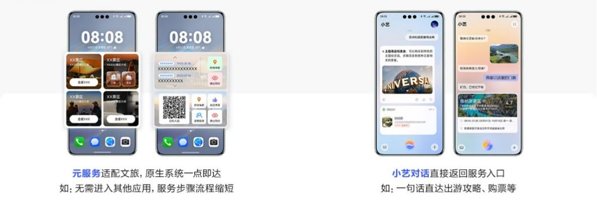 在游客準(zhǔn)備出行前,鴻蒙文旅行業(yè)解決方案在景區(qū)信息查詢、票務(wù)預(yù)訂、導(dǎo)航導(dǎo)覽、餐飲及旅游服務(wù)等方面也盡顯強(qiáng)大便捷性。游客可以利用“小藝小藝”語(yǔ)音快捷訂票功能,輕松完成票務(wù)預(yù)訂,相較于傳統(tǒng)的訂票方式,這一功能能夠減少操作流程,大大節(jié)省了時(shí)間。同時(shí),基于POI點(diǎn)位推送功能,系統(tǒng)會(huì)實(shí)時(shí)向游客發(fā)送出行、接送機(jī)、目的地酒店等提醒信息,確保游客不會(huì)錯(cuò)過(guò)任何重要的出行信息。此外,原生鴻蒙的近場(chǎng)推薦功能也能夠在出行前為游客提供個(gè)性化的服務(wù)信息。例如,當(dāng)游客計(jì)劃前往某個(gè)景點(diǎn)時(shí),系統(tǒng)會(huì)根據(jù)游客的位置和興趣,自動(dòng)推送該景點(diǎn)的介紹信息,幫助游客更好地了解景點(diǎn)的特色與歷史文化背景,為出行做好充分的準(zhǔn)備。