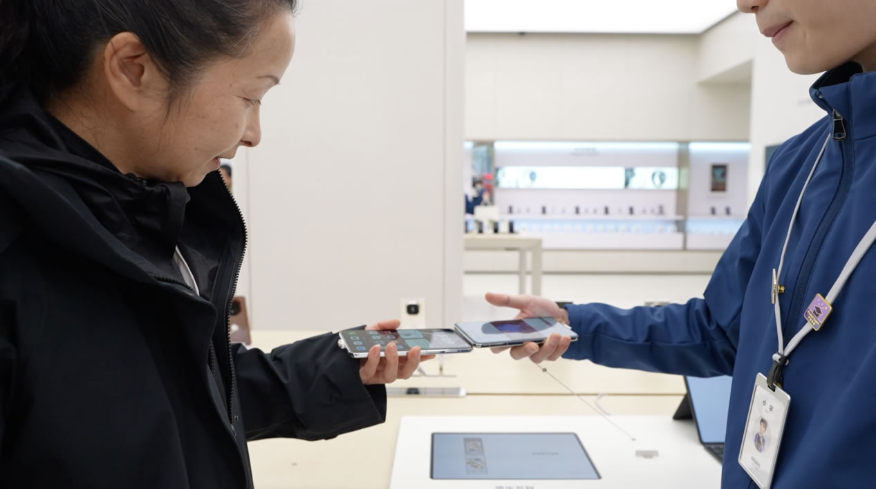 十一點,大家聚在一起頭腦風暴。張晴把方案資料共享給同事,照片、視頻、文件,甚至正在觀看的網站,都可以通過「華為共享」直接傳輸。面對面辦公就更方便了,兩臺手機「碰一碰」,傳送門就出現(xiàn)了。