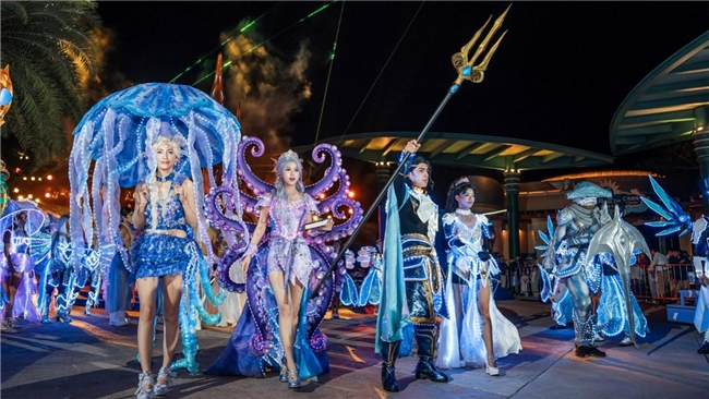 在本次活動(dòng)中,特別設(shè)置的NPC(非玩家角色)演藝巡游活動(dòng)成為一大亮點(diǎn)。亞特蘭蒂斯原創(chuàng)NPC“海洋七子”驚艷出場(chǎng),包括擁有無(wú)限力量、守護(hù)光明正義的阿特拉斯王子,用優(yōu)雅的歌聲喚醒深海綺夢(mèng)的人魚(yú)星娜,預(yù)言洞悉萬(wàn)物、感知生命力量的章魚(yú)菲婭,智慧引領(lǐng)科技、把握未來(lái)方向的海龜拉斐爾,勇敢成為利刃、開(kāi)啟榮耀之路的鯊魚(yú)坦克,在美麗的星光下閃耀夢(mèng)幻光芒的水母歐若拉,以及愛(ài)能穿梭角落、點(diǎn)亮浩瀚海洋的海馬維納斯。演員們身著奇幻服飾,化身這些海洋生物形象,在園區(qū)內(nèi)巡游展演,與游客近距離互動(dòng),創(chuàng)造了難忘的度假記憶。