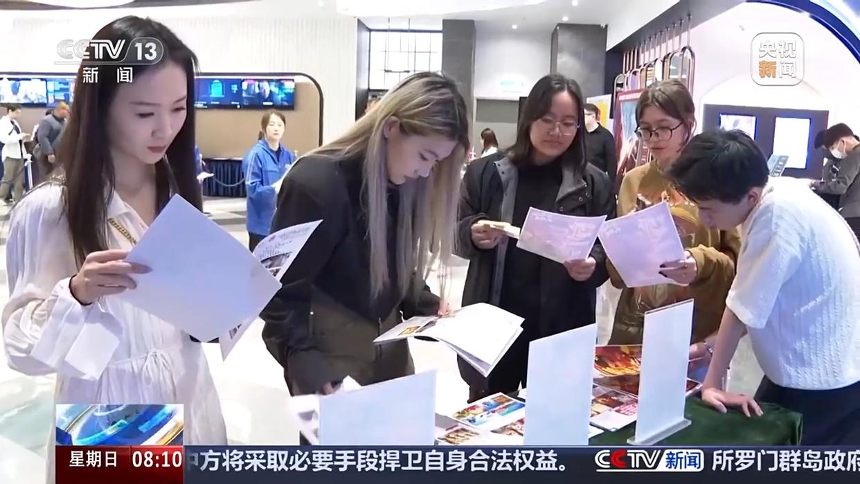 在澳門(mén)英皇戲院,很多剛剛看完《哪吒2》的觀眾第一時(shí)間就來(lái)到“跟著電影去旅游”展臺(tái)前咨詢。