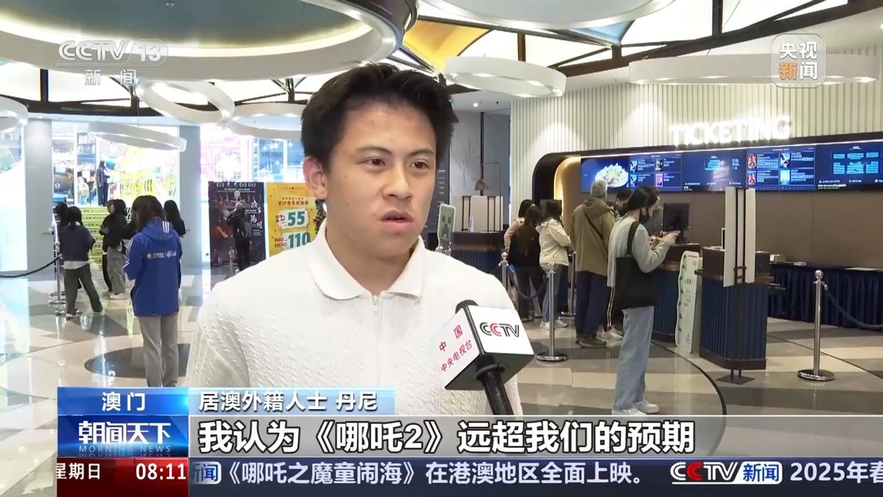 居澳外籍人士 丹尼:我認(rèn)為《哪吒2》遠(yuǎn)超我們的預(yù)期,它有很深遠(yuǎn)的文化內(nèi)涵,看完這部電影,讓我很想去中國(guó)內(nèi)地去旅行,因?yàn)樵谟捌锍尸F(xiàn)出來(lái)了很吸引人的美食和文化。(來(lái)源:央視新聞)