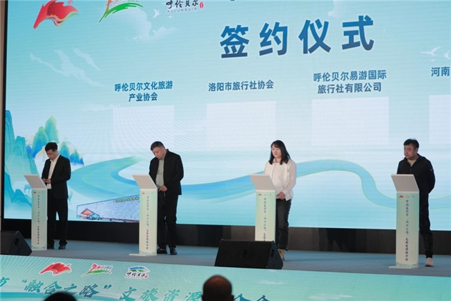 推介會上隆重發(fā)布了洛陽--呼倫貝爾航線的航班時刻、促銷政策,將于4月1日中國洛陽牡丹文化節(jié)當(dāng)日啟動首航。航線的發(fā)布引起了洛陽文旅企業(yè)的熱烈回應(yīng),洛陽至呼倫貝爾的文旅熱線產(chǎn)品開發(fā)隨航線開通而迅速提上了日程。推介會后,雙方就下一步研學(xué)合作、資源踏查、線路開發(fā)等實質(zhì)合作進(jìn)行了座談,就聯(lián)合開發(fā)“融合之路”文旅品牌系列產(chǎn)品達(dá)成了一致意見。作為呼倫貝爾市深入開展北疆文化建設(shè)提升行動的重要舉措,圍繞“融合之路”文旅品牌,擬深入挖掘拓跋鮮卑南遷歷史,以文化為媒、歷史為脈,尋跡呼倫貝爾、呼和浩特、山西大同、河南洛陽的歷史文化資源,開發(fā)集歷史文物、自然風(fēng)光、民俗文化等元素為一體的綜合性旅游線路。呼倫貝爾市和洛陽市作為這條“融合之路”的起點和終點,在本次活動中成為了文化交流的焦點。