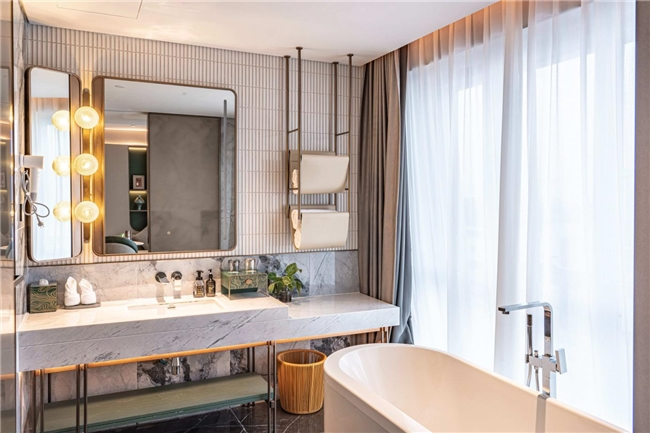 客房設(shè)計(jì)同樣體現(xiàn)了高端酒店的精致與舒適,每間客房均采用開(kāi)放式布局,空間開(kāi)闊,搭配定制照明系統(tǒng),營(yíng)造溫馨私密氛圍。智能控制系統(tǒng)讓賓客可輕松調(diào)控?zé)艄、溫度及娛?lè)設(shè)備,科技融入自然流暢。浴室配備豪華衛(wèi)浴設(shè)施與高品質(zhì)洗浴用品,保障尊貴洗浴體驗(yàn)。全景落地窗設(shè)計(jì)更是將武漢沙湖美景引入室內(nèi),讓賓客足不出戶即可飽覽城市風(fēng)光。
