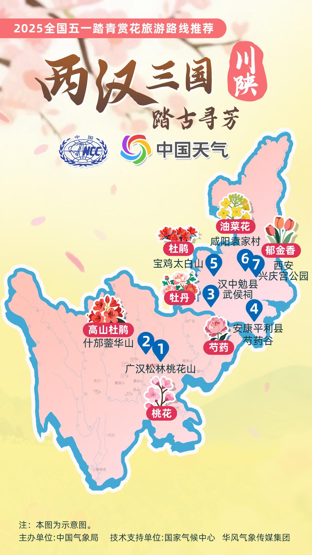 正值杏花、杜鵑花等春花盛放時(shí)節(jié),中國氣象局針對全國景點(diǎn)主要花品,對其生長積溫和物候期進(jìn)行關(guān)聯(lián)性分析,建立多種花品的最佳觀賞期預(yù)報(bào)模型,提供賞花預(yù)報(bào)服務(wù)。在此基礎(chǔ)上,國家氣候中心、華風(fēng)氣象傳媒集團(tuán)依據(jù)歷史氣候資料和今年氣候預(yù)測,參考花期模型預(yù)報(bào)結(jié)果,結(jié)合區(qū)域地理分布、小氣候特征和旅游景點(diǎn)等信息,推出4月下旬至5月上旬適宜踏青賞花的線路。
