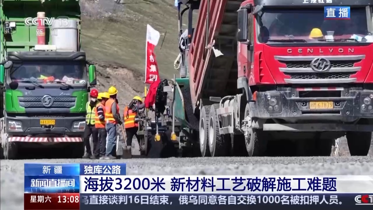 因?yàn)檫@里是高寒高海拔地區(qū),記者腳下的山體都是永久凍土層,氣溫變化凍土層會出現(xiàn)凍融的情況,凍融就是天氣冷就會凍住結(jié)冰,天氣暖和就會融化,凍融的出現(xiàn)會讓道路出現(xiàn)沉陷的情況。為了應(yīng)對這種凍土層,公路部門也是采取了一種新的試驗(yàn)工藝,這種工藝看起來就和常見的水泥很像,但是這種新工藝具有輕質(zhì)、耐久的特點(diǎn),適合在高原凍土鋪路。