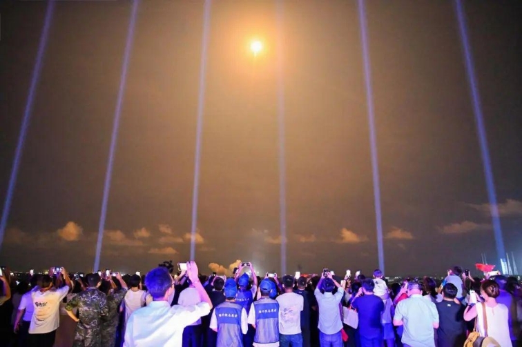 “5,4,3,2,1”——火箭的火焰照亮夜幕,平臺(tái)的光束射向天際……19時(shí)50分,火箭發(fā)射升空,游客們舉著手機(jī)記錄,現(xiàn)場(chǎng)歡呼聲陣陣。“很興奮、很震撼,感覺(jué)一伸手就能‘抓’到火箭。”延鈺菲說(shuō)。