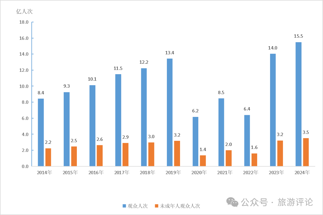 2014—2024年全國文物機構接待觀眾人次及未成年人觀眾人次