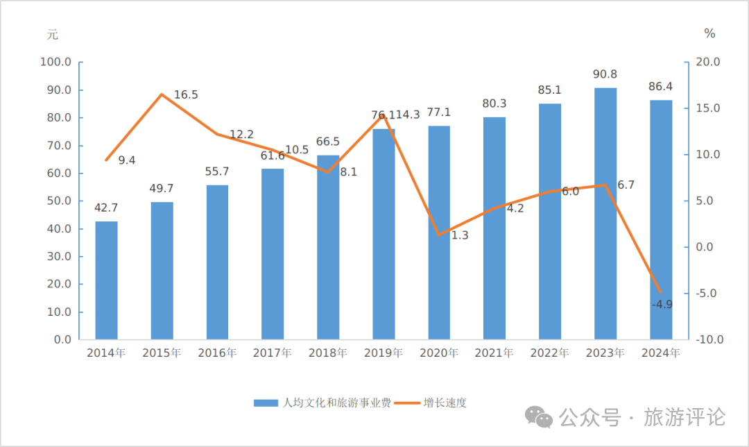 2014—2024年人均文化和旅游事業(yè)費及增速情況