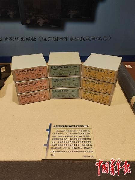 民國(guó)文獻(xiàn),是縮微中心正在努力的工作對(duì)象。中青報(bào)·中青網(wǎng)記者在展覽現(xiàn)場(chǎng)看到一組“遠(yuǎn)東國(guó)際軍事法庭庭審記錄縮微膠片”。這是2011年,經(jīng)多方努力,國(guó)家圖書(shū)館從國(guó)外購(gòu)回的近5萬(wàn)頁(yè)東京審判庭審記錄縮微文獻(xiàn)。