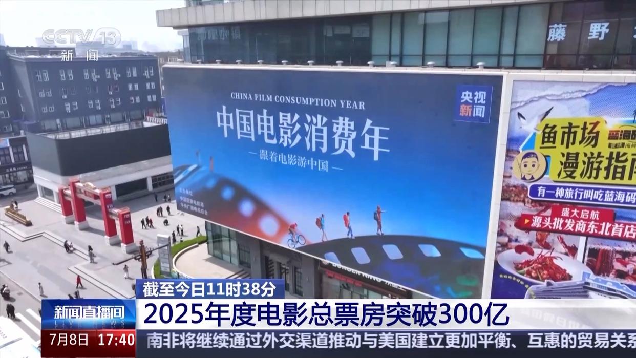 據(jù)網絡平臺數(shù)據(jù),截至今天(7月8日)11時38分,2025年度電影票房(含預售)突破300億,相較去年提前28天。