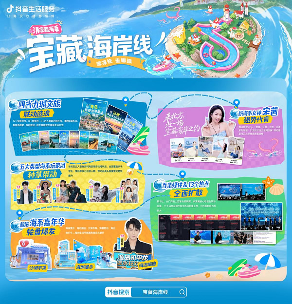 當(dāng)海浪與城市共鳴,當(dāng)流量與體驗(yàn)共振,抖音生活服務(wù)聯(lián)合四省九城打造了一場(chǎng)「寶藏海岸線」文旅盛宴,交出了一份令人矚目的答卷。從政府到商家,從明星到達(dá)人,從線上種草到線下狂歡,這場(chǎng)以“海”為核的超級(jí)IP,不僅激活了海岸經(jīng)濟(jì)的新動(dòng)能,更重新定義了夏季海濱生活的無(wú)限可能。