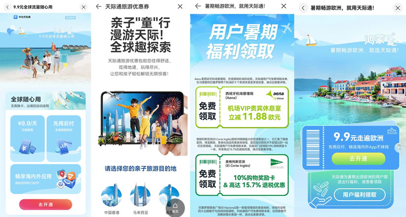 暑期,天際通為計(jì)劃出境游的用戶特別推出了“全球隨心用”活動(dòng),境外流量9.9元包天,每天有5GB高速流量,活動(dòng)覆蓋港澳、新馬泰、日韓、歐洲、澳大利亞、美國(本土地區(qū))等50個(gè)國家地區(qū),多重優(yōu)惠讓境外出行更劃算。華為天際通還為出行亞洲、歐洲的用戶提供了多地旅游優(yōu)惠權(quán)益,涵蓋機(jī)票酒店、旅游景點(diǎn)、吃喝玩樂等各個(gè)方面,更多精彩等你來發(fā)現(xiàn)!