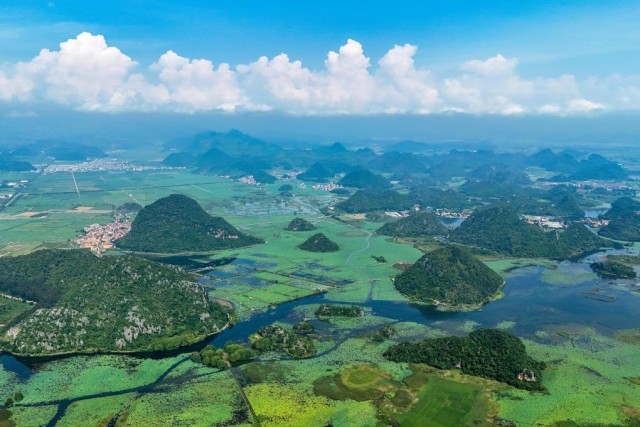 7月16日拍攝的普者黑景區(qū)風(fēng)光(無人機照片)。新華社記者 彭奕凱 攝