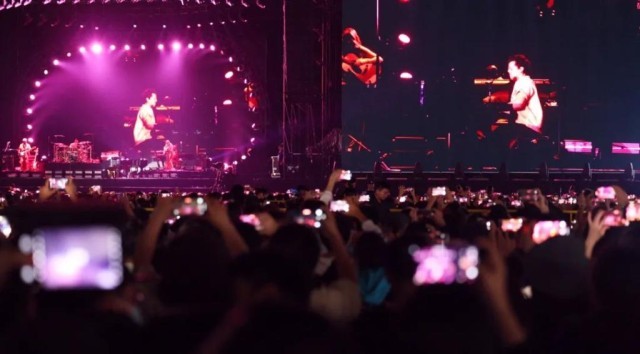 圖為查理·普斯世界巡回演唱會海口站現(xiàn)場。(?谑新糜魏臀幕瘡V電體育局供圖)