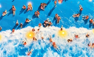不久前,在江蘇南通森林野生動(dòng)物園,南通“蘇超”球迷專屬夜公園免費(fèi)暢玩吸引了眾多“蘇超”球迷。凡持有江蘇城市足球聯(lián)賽任意場次票根的球迷,均可享受一次夜公園免票入園。圖為球迷、游客在專屬夜公園水上樂園戲水。