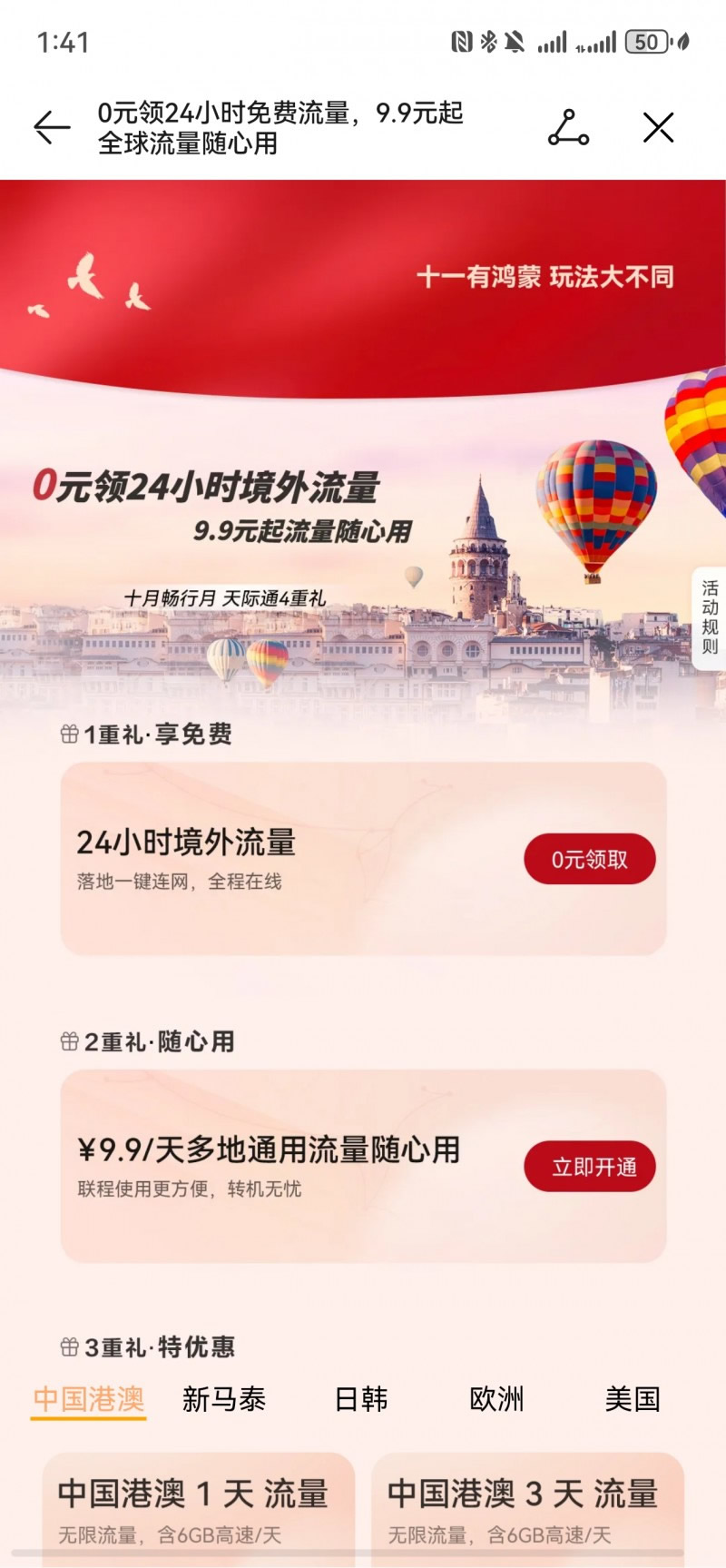 十一有鴻蒙!華為天際通多重禮遇解鎖全球上網(wǎng)暢行體驗(yàn)
