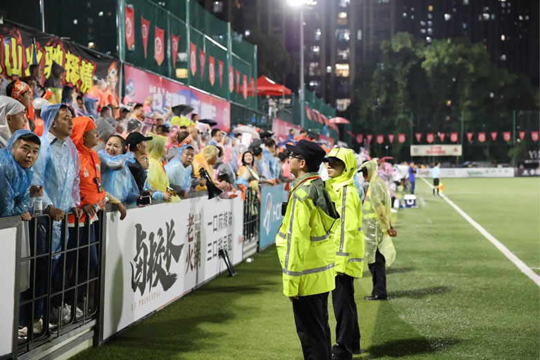 在此過程中,民警、輔警在嚴(yán)謹(jǐn)安保的同時,還用心提供便民服務(wù)。期間,他們耐心幫助小球迷穿好雨衣、協(xié)助群眾尋找遺失物品、攙扶行動不便者通過積水路段,用實(shí)際行動為賽場增添溫暖。