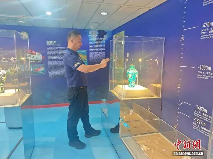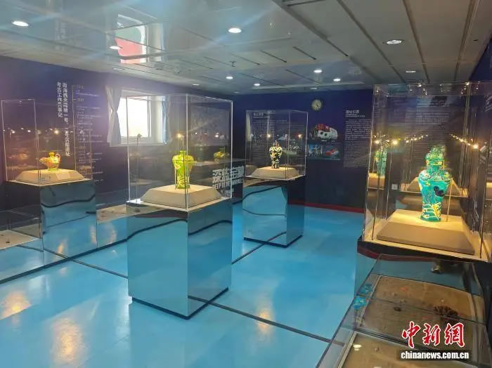 中國(海南)南海博物館館長辛禮學介紹,改造后的海上流動博物館核心展區(qū)推出了“深藍寶藏——南海西北陸坡一二號沉船考古成果特展”主題展覽,借助沉浸式場景還原、多媒體數(shù)字技術和精美復仿制文物,展現(xiàn)南海西北陸坡沉船遺址的地理位置、深海環(huán)境與考古成果。