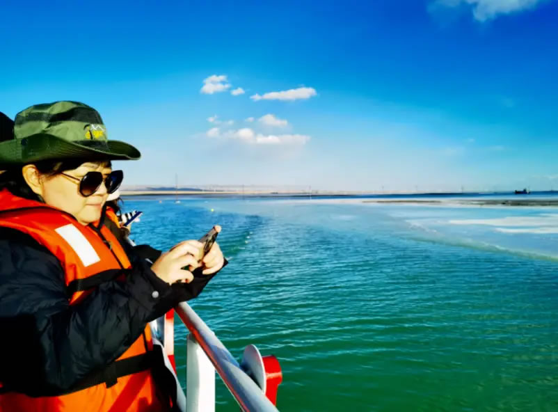 10月14日,由中共海西州委宣傳部主辦、西海都市報(bào)社承辦的“紅杞風(fēng)光別樣美 ”活動(dòng),走進(jìn)海西蒙古族藏族自治州烏蘭縣,研學(xué)團(tuán)隊(duì)來(lái)到茶卡鹽湖,乘坐游船觀光,湖面上駛來(lái)的大型運(yùn)鹽船讓外省記者及學(xué)生不由感嘆:沒想到“天空之鏡”還有另外一種獨(dú)特景致。湖面上駛來(lái)的大型運(yùn)鹽船吸引了研學(xué)團(tuán)隊(duì)成員的目光。采鹽船正在鹵水中作業(yè),發(fā)出低沉的轟鳴,空氣中彌漫著咸潤(rùn)的氣息。研學(xué)的同學(xué)通過(guò)實(shí)地觀察鹵水的蒸發(fā)、結(jié)晶過(guò)程,將課本上的地理、化學(xué)知識(shí),與這片壯麗的現(xiàn)實(shí)場(chǎng)景融會(huì)貫通。