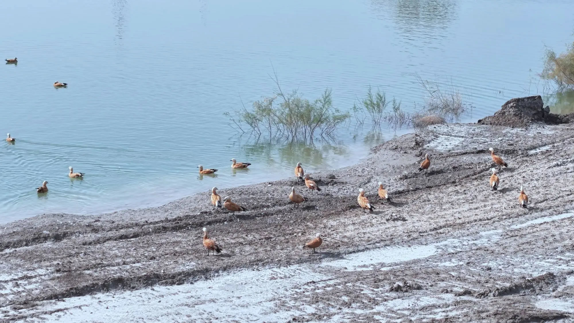 深秋時(shí)節(jié),新疆輪臺(tái)縣草湖鄉(xiāng)可可橋村迎來大批遷徙候鳥。廣袤的戈壁荒灘上,大量赤麻鴨、灰雁在此集結(jié)棲息,甚為壯觀。