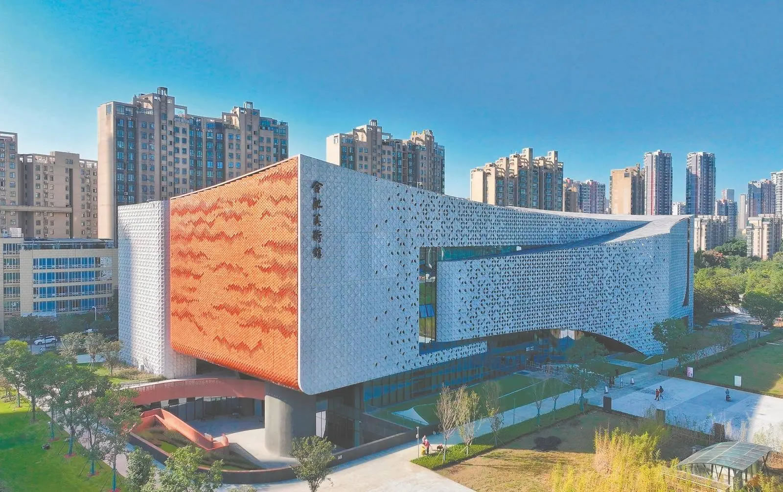 10月24日拍攝的合肥美術館。10月22日起,該館開啟試運行壓力測試。合肥美術館位于合肥市蜀山區(qū),總建筑面積3.6萬平方米,規(guī)劃10個展廳,擬于11月中下旬正式開館。(陳三虎 攝)