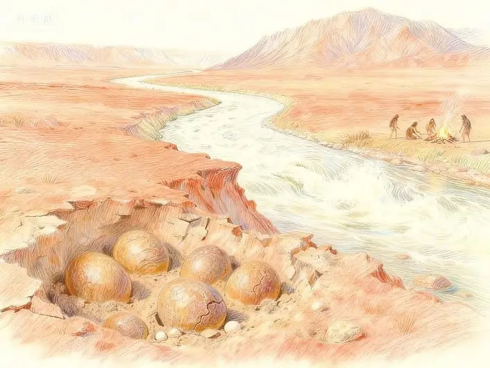 研究顯示,青龍山段古漢江河床曾經(jīng)歷多次構(gòu)造抬升(單次60米至80米)、河道北移及河谷下切,現(xiàn)存山頂325米級(jí)階地與漢江現(xiàn)河床(海拔僅170米)形成鮮明對(duì)比。這一演化過程不僅塑造了青龍山獨(dú)特的地貌,更可能成為全球罕見“埋藏淺、出露廣”的恐龍蛋化石群形成的關(guān)鍵因素。