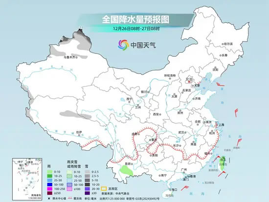 昨天開(kāi)始,全國(guó)的降水開(kāi)始逐漸減少。昨天,東北地區(qū)的降雪基本結(jié)束,南方仍有大范圍陰雨。監(jiān)測(cè)顯示,24日8時(shí)至25日6時(shí),新疆北部、內(nèi)蒙古東部、東北地區(qū)及山東半島等地部分地區(qū)出現(xiàn)雨夾雪或小雪;廣西北部至浙江北部一帶等地部分地區(qū)出現(xiàn)中雨或大雨。