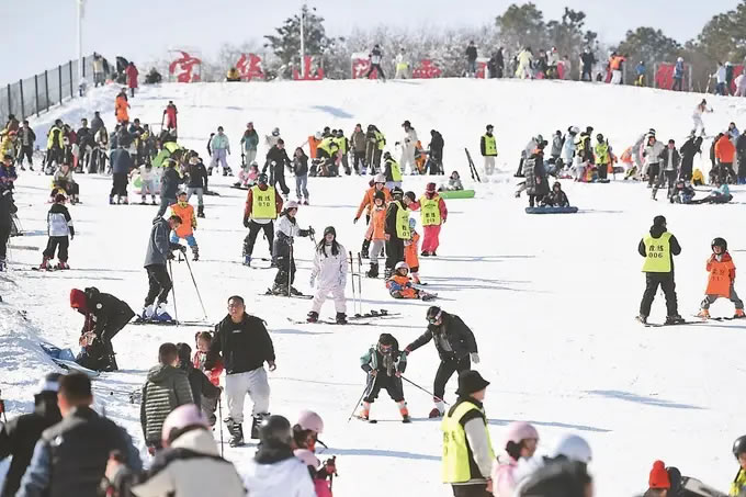 寶華山滑雪場(chǎng)總面積約5萬(wàn)平方米,以“全齡友好、專業(yè)適配”為核心設(shè)計(jì)理念,場(chǎng)地配備進(jìn)口造雪機(jī)、壓雪車等專業(yè)設(shè)備,并配套建設(shè)休息大廳、熱飲餐飲區(qū)及專業(yè)的裝備租賃服務(wù)中心。地理位置是寶華山滑雪場(chǎng)的顯著優(yōu)勢(shì)之一,從南京主城區(qū)、鎮(zhèn)江市區(qū)駕車約1小時(shí)即達(dá)。“在家門口滑雪,省時(shí)又便利。”南京游客陳先生帶著家人一早便驅(qū)車趕來,第一時(shí)間體驗(yàn)冰雪帶來的快樂。雪場(chǎng)負(fù)責(zé)人趙洪波介紹,目前雪場(chǎng)采取分時(shí)段預(yù)約制,并配備200人的專業(yè)教練團(tuán)隊(duì)保障游客體驗(yàn)。