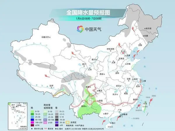 預計今后三天,南方雨雪天氣范圍將縮減,但東北地區(qū)降雪將發(fā)展增多。中央氣象臺預計,今天,內蒙古中西部和東北部、黑龍江西北部、新疆北疆北部、沿天山地區(qū)和南疆西部山區(qū)、西藏東南部和北部、山西北部、川西高原、貴州西部、云南東北部等地部分地區(qū)有小雪或雨夾雪。湖南南部、江西中南部、浙江中部、福建中部、云南東部、廣西西部等地部分地區(qū)有小雨,臺灣島東部等地部分地區(qū)有小到中雨。