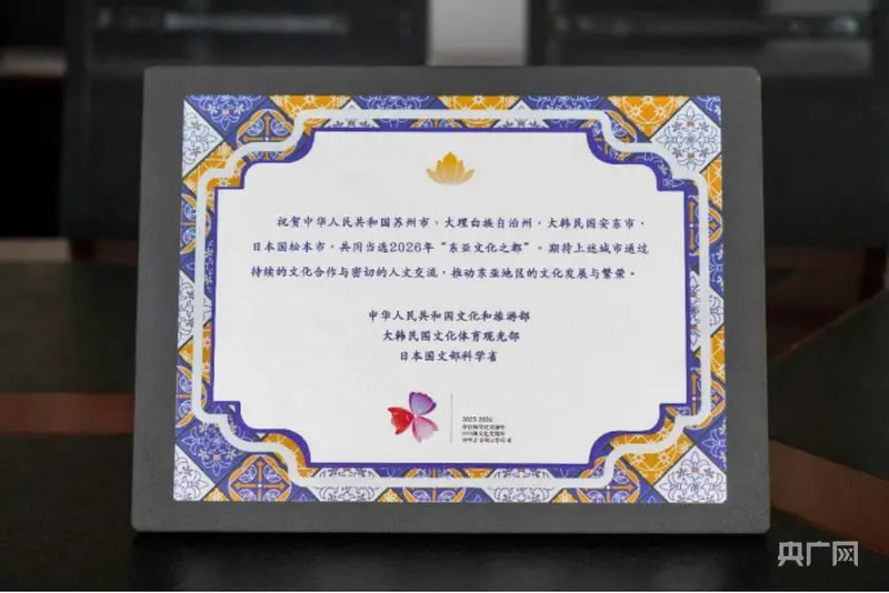 央廣網(wǎng)大理1月7日消息(記者 魏文青)近日,2026年“東亞文化之都”評(píng)選結(jié)果在北京揭曉,大理白族自治州成功當(dāng)選,成為云南省首個(gè)獲此殊榮的城市,也為云南參與東亞城市文化交流打開(kāi)新的門(mén)戶。