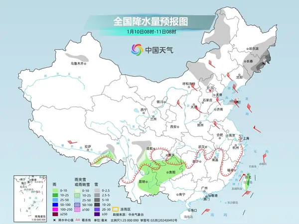中國天氣網(wǎng)訊 眼下,一股較強(qiáng)冷空氣正在影響我國北方地區(qū),給多地帶來大風(fēng)降溫、雨雪及沙塵天氣。今明兩天(1月10日至11日),隨著冷空氣東移南下,華北、黃淮等地最高氣溫將降至近期低點(diǎn)。不過,冷空氣來去匆匆,下周初各地最高氣溫又會迅速回升。此輪冷空氣帶來的雨雪天氣主要集中在北方,今天東北部分地區(qū)仍會有降雪現(xiàn)身,山東半島等地將現(xiàn)冷流雪,提醒公眾注意做好防范措施。
