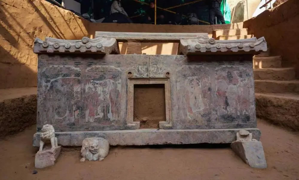 這是西安百花村北周成夫人墓中發(fā)現(xiàn)的石槨。(西安市文物保護(hù)考古研究院供圖)