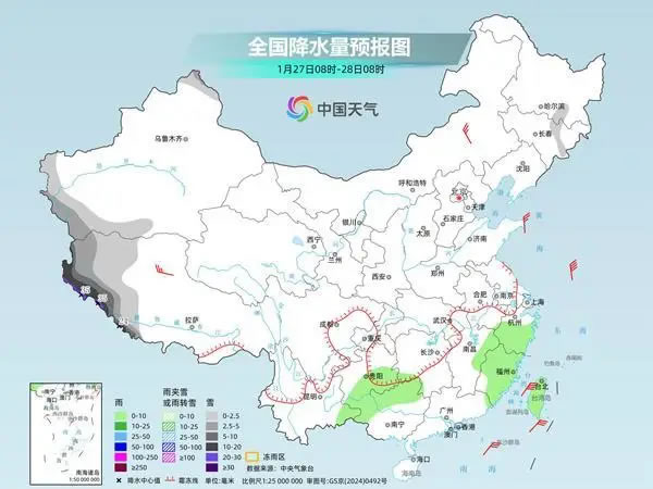 具體來看,中央氣象臺預(yù)計(jì),今天,新疆北疆北部和南疆盆地西部、西藏西部和南部等地部分地區(qū)有中到大雪,其中,西藏西部和南部等地部分地區(qū)有暴雪到大暴雪,局地特大暴雪。湖南南部、江西中北部、浙江大部、福建大部、貴州中南部、云南東南部、廣西西部和東北部、臺灣島等地部分地區(qū)有小雨。